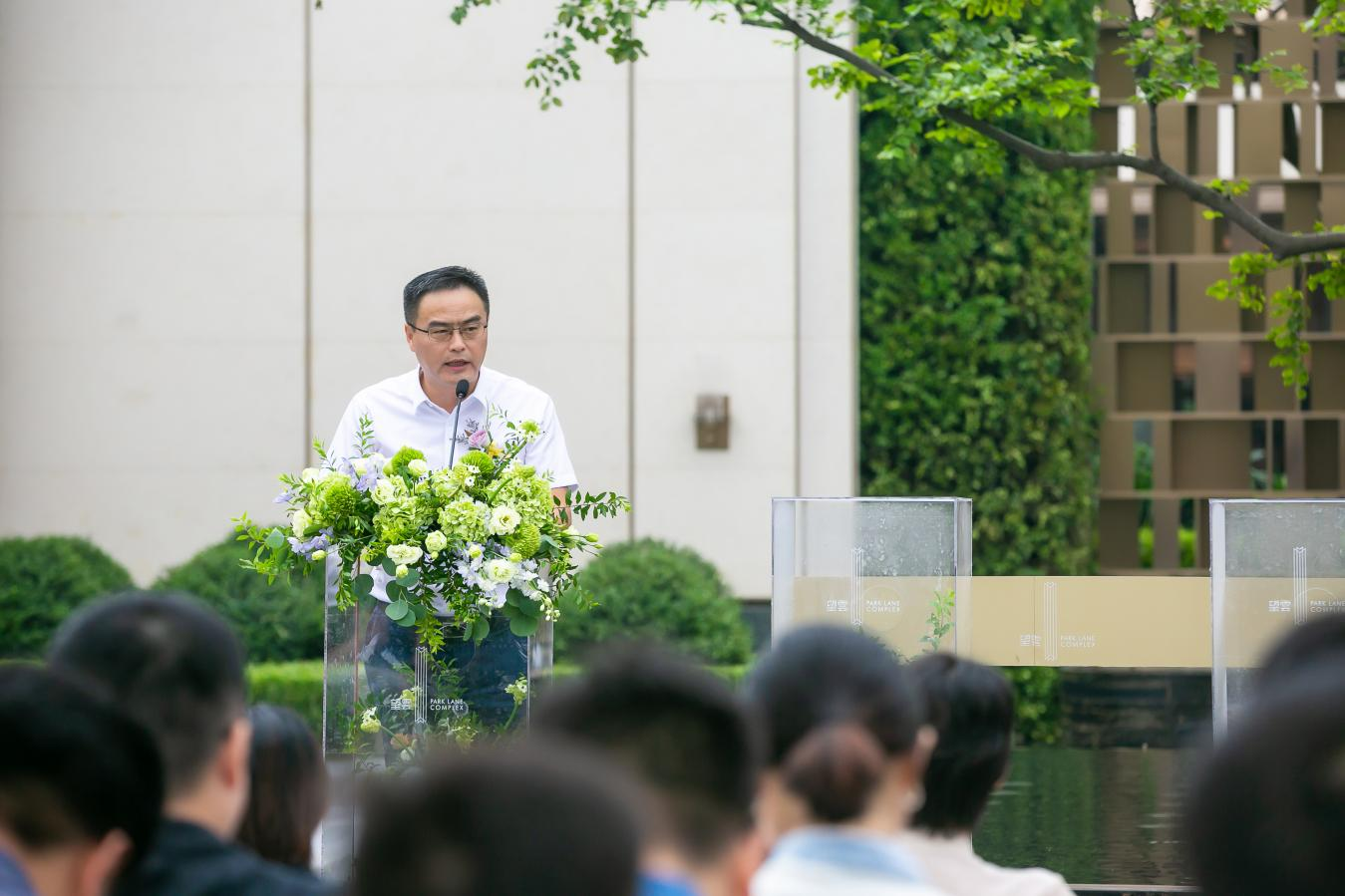 在主持人热情的开场介绍之后,合肥滨润置业有限公司董事长李萌率先登场致辞,表示“望雲是合肥城建与华润置地继润城中心之后,再次携手打造的又一高端改善著作。从拿地之初,就以满分竞品质的成绩,定义了整个城市的高端产品底色,呈现出原创性的审美迭代著作。以‘审美交付’、一系列设计创举刷新高端,以超高品质产品力,成就优质资产。”华润置地合肥片区公司助理总经理余正国代表华润置地对示范区开放和项目的建设愿景发表了热情洋溢的讲话。最后,双方领导和嘉宾共同登台,为开放仪式剪彩。